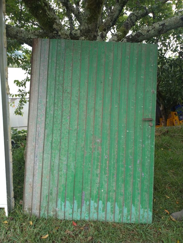Detalles del productoportal exterior de una hoja de 1,55 de alto por 1,10metros de ancho. Necesita cambio de cerradura y pintar. Se entrega en persona en O Porriño, zona Leroy Merlín. Medidas del producto
