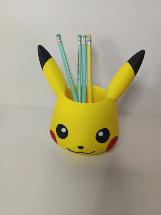 Original portalápices con el diseño de Pikachu. - Forma de cabeza de Pikachu. - Color amarillo. - Orejas puntiagudas.
