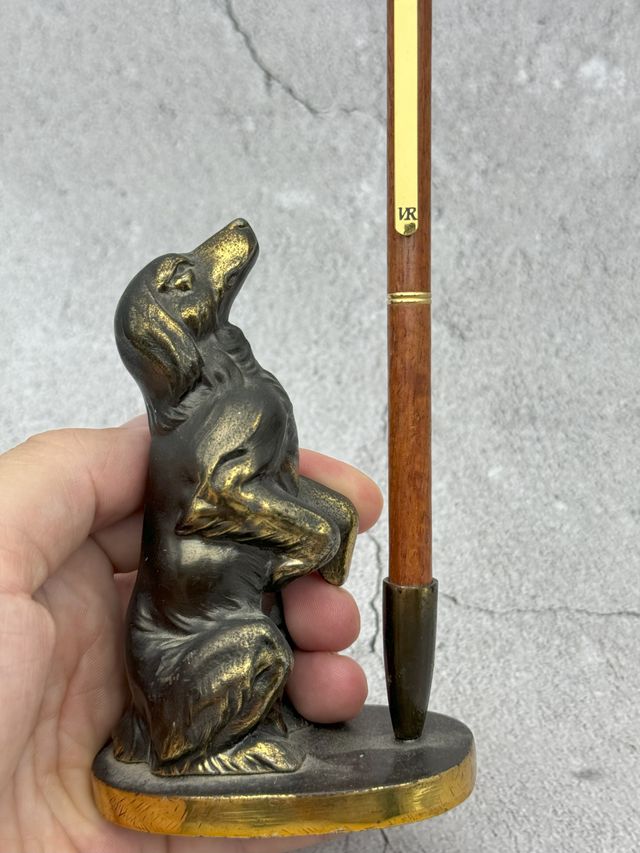 Vintage titular de la pluma con un perro con muy buenos detalles. El portalápices está en buen estado vintage, tiene algunas motas y arañazos no significativos. Bolígrafo vintage de regalo. He mostrado estado detallado y dimensiones en las fotos.Suscríbete a la tienda para no perderte nuevos artículos vintage y antiguos, será más interesante. Gracias