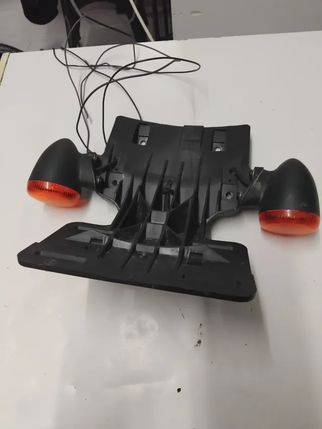 Portamatriculas con intermitentes para Harley Davidson. Pieza de plástico negro. - Incluye dos intermitentes naranjas. - Cableado incluido.