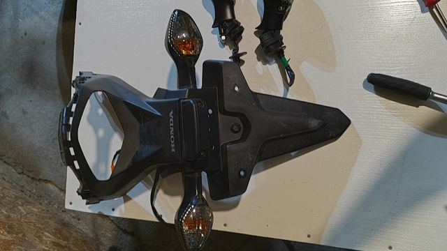 Se vende portamatrículas para Honda CB500X. Está en buen estado con sus 4 intermites. - Marca Honda visible