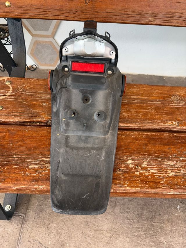 Portamatriculas trasero para Honda X8R. Está usado y presenta algunas marcas de desgaste. - Pieza de recambio para moto. - Material plástico resistente.