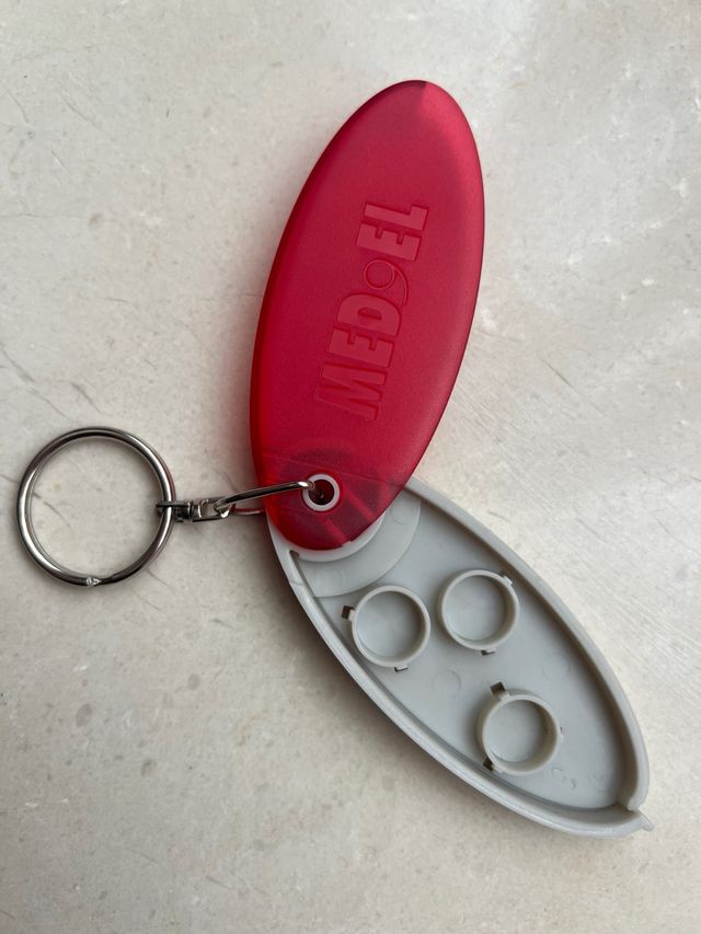 Llavero porta pilas P675 para implantes cocleares, audifonos y otras prótesis auditivas.