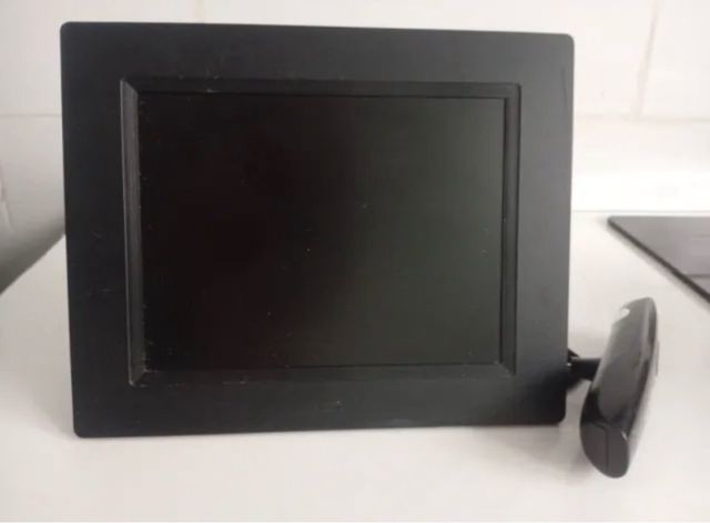 Detalles del producto -Marco de fotos digital de diseño compacto y funcional color negro.