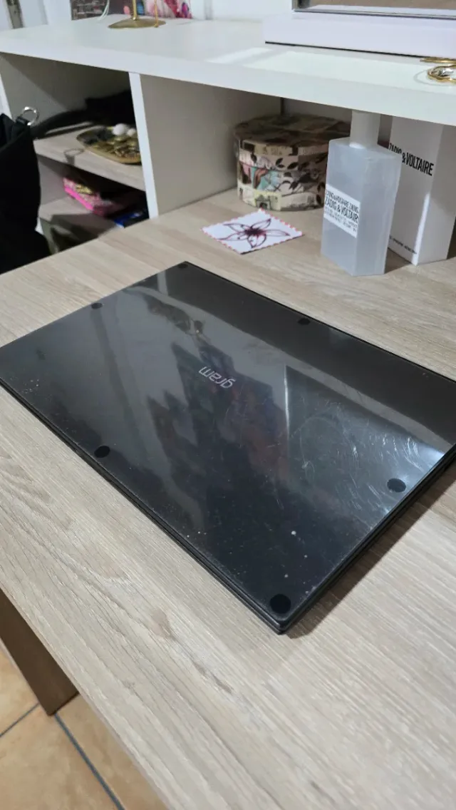 El portatil esta como nuevo no se ha utilizado casi nada en el tiempo que se ha tenido tiene hazta el plastico protector de la cara posterior del portatil por eso se ve arañado esta COMO NUEVO no tiene garantia.