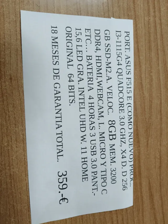Portátil Asus F515 E 8GB RAM 256GB SSD