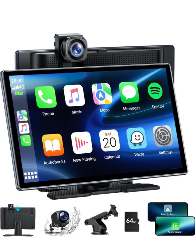 * Universal para el 99% de Los Automóviles y Fácil Instalación: Pantalla de visualización estéreo para automóvil con soporte de ventosa giratorio de 360 grados y soporte autoadhesivo. Apple Carplay soporte de ventosa de ángulo ajustable fija de forma segura el dispositivo al tablero o al parabrisas; también puede usar los soportes autoadhesivos. Y se puede quitar fácilmente cuando no esté en uso.