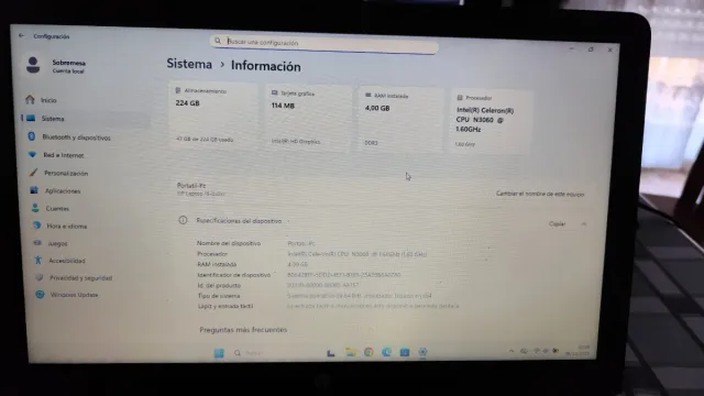 Portátil HP Celeron 4GB RAM 224GB Almacenamiento