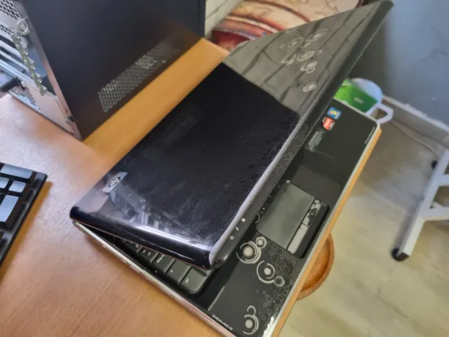 Detalles del productoPortátil HP Pavilion dv6 con detalles estéticos.