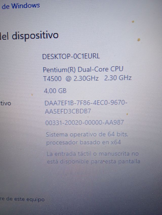 - Procesador Pentium(R) Dual-Core CPU T4500 @ 2.30GHz.