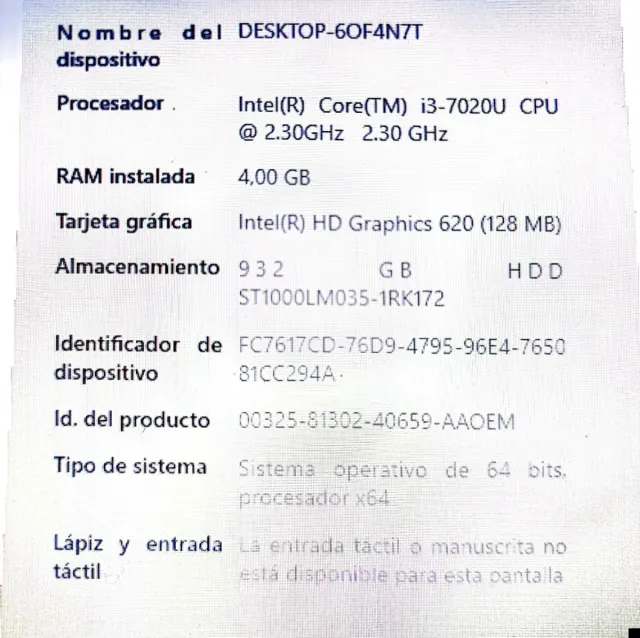 Portátil Intel Core i3-7020U 4GB RAM