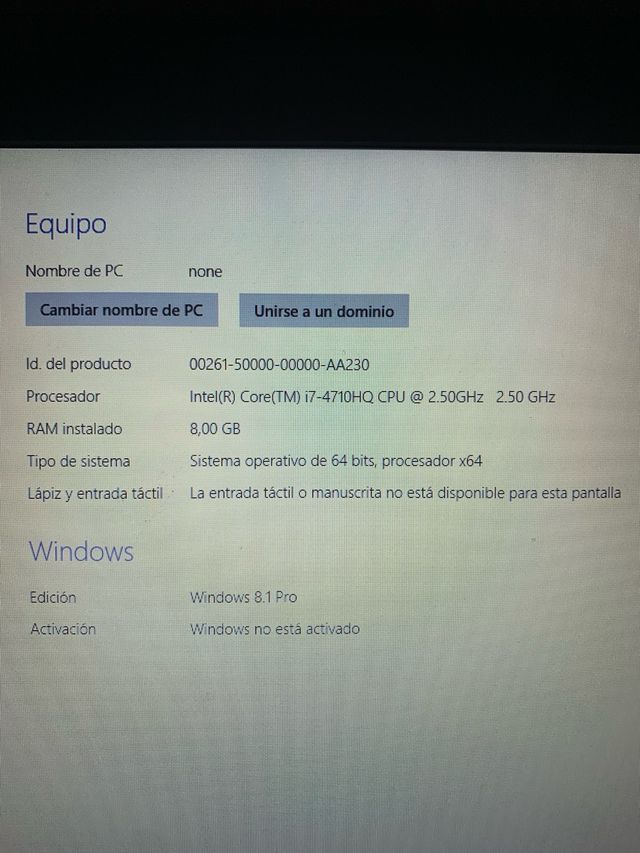 Portátil Lenovo i7 8GB RAM Windows 8.1 Pro