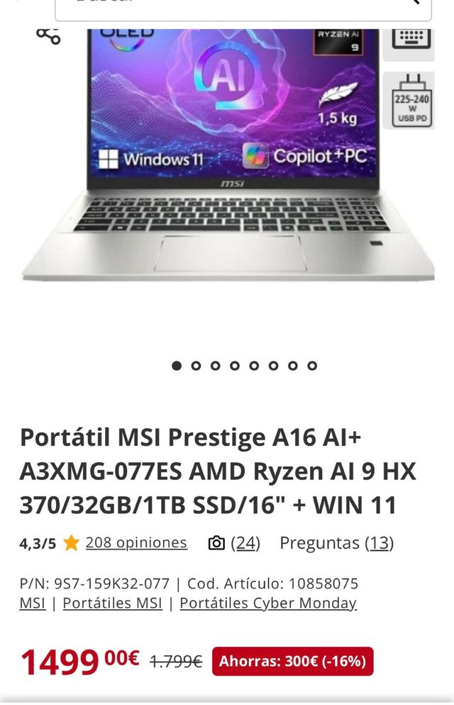 Portátil MSI Prestige A16 AI+ Ryzen 9