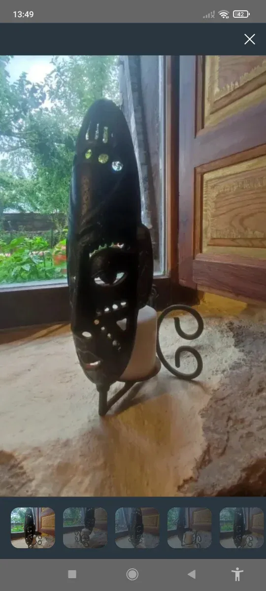 Portavelas grande con vela y soporte