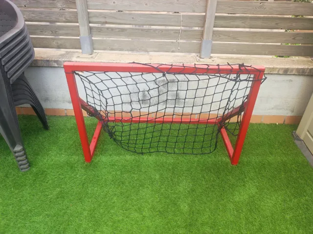 Detalles del productoPortería de fútbol pequeña, fabricada en metal. Es muy estable y pesada, ideal para entrenamientos o juegos.