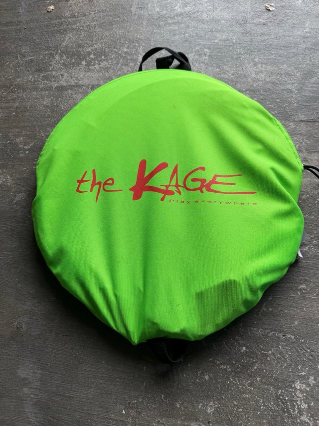 Mini portería de fútbol portátil de la marca KAGE, con el lema Play everywhere.
