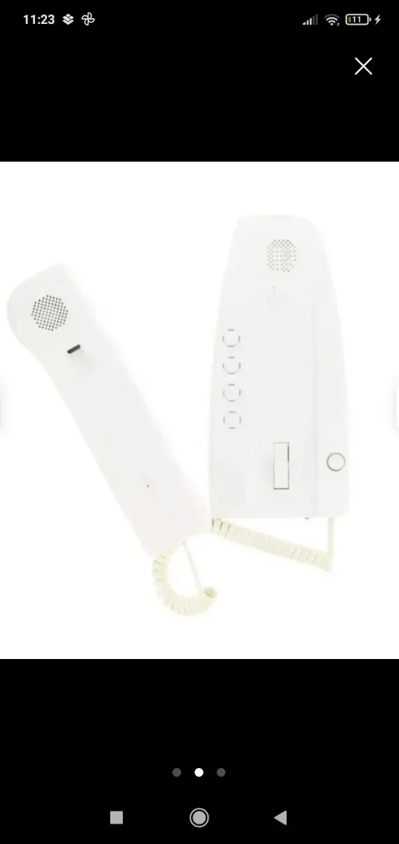 Sistema de portero automático en color blanco. - Auricular con altavoz y micrófono. - Base con botones. - Cable en espiral.