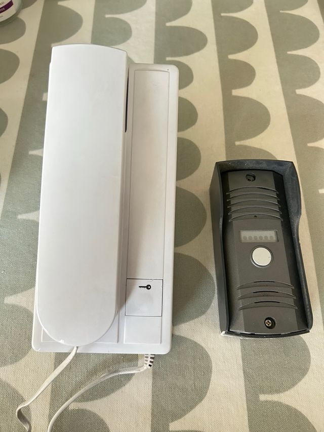 Detalles del productoKit de portero automático con interfono para casa o piso. Incluye teléfono interior blanco y pulsador exterior con micro y altavoz. Funciona correctamente y presenta leves señales de uso. Ideal para reemplazos. Fácil instalación (conocimientos básicos de cableado necesarios). El teléfono tiene botón de apertura de puerta. La unidad exterior tiene carcasa metálica resistente con protección para la intemperie.