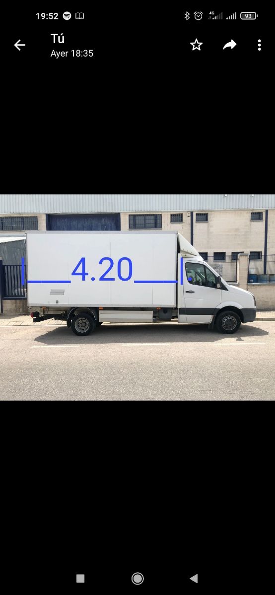Detalles del productoSe realizan todo tipo de porte y Mudanzas, Alicante, Benidorm, Denia, Calpe, Gandía, Valencia,Comun.Valenciana, Región de Murcia, Castilla la Mancha, Madrid, País Vasco, Cataluña, toda españa, grandes y pequeños, Mudanzas nacional compartidas, medidas de la caja 4'20 de largo, 2'00 de alto, 2'10 de ancho, disponemos de trampilla elevadora para motos y Quad, cualquier duda escribirnos por Whatsapp al 693 685 025, estamos para solucionar tu mudanzas.