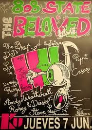Detalles del productoPóster del evento de 803 State con The Beloved. Presenta un diseño llamativo con ilustraciones y nombres de DJs.
