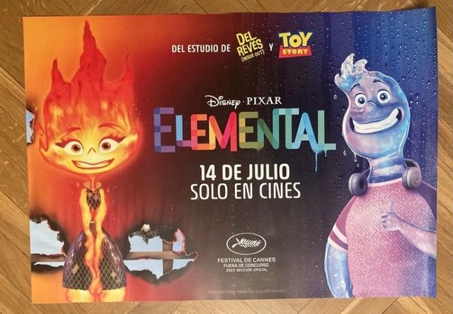 Cartel original cine película elemental. Medidas: 48 de alto × 68 de ancho. Perfecto estado. Disney. Pixar