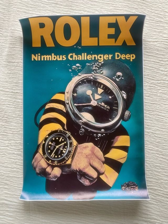 Póster de alta calidad con diseño de buzo y reloj Rolex Submariner. - Tamaño: 30x45cm. - Imagen temática de buceo profundo.