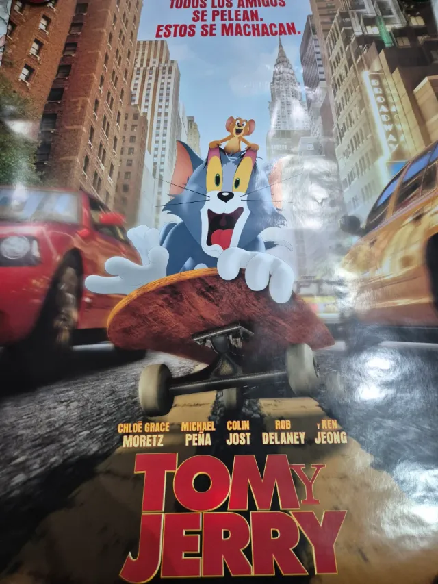 Póster promocional de la película Tom y Jerry. Original de cine medidas 97x68cm - Diseño con los personajes principales. - Texto en español.