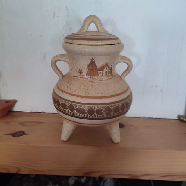 Detalles del productoPrecioso pote de cerámica gallega, ideal para decoración. Una pieza única con un diseño artesanal encantador. -Presenta un estilo rústico y detalles pintados a mano. -Perfectos para dar un toque vintage a tu hogar.
