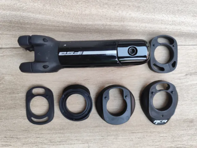Detalles del productoPotencia de aluminio FSA ACR con varios espaciadores.