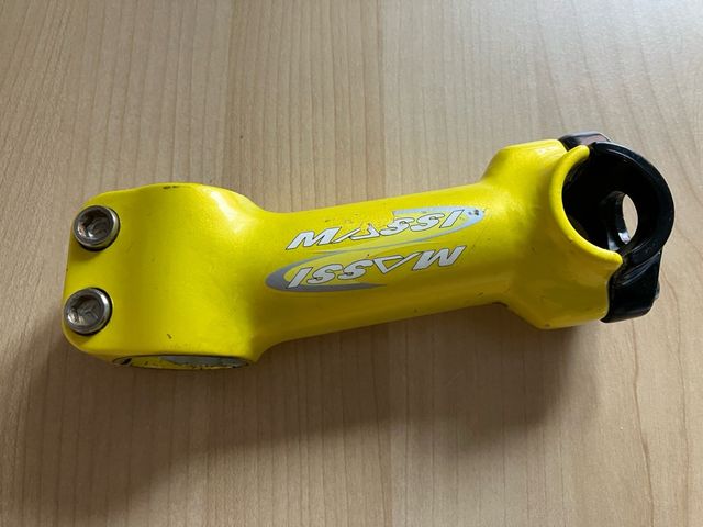 Potencia de bicicleta Massi en color amarillo. - Diseño deportivo. - Logotipo de la marca visible. mtb GT BH Orbea gravel carretera