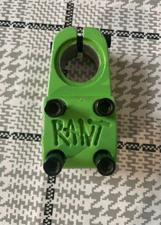 Potencia de BMX de la marca Rant. Está en buen estado, con algunos signos de uso. - Color verde. - Marca Rant. - Para BMX.