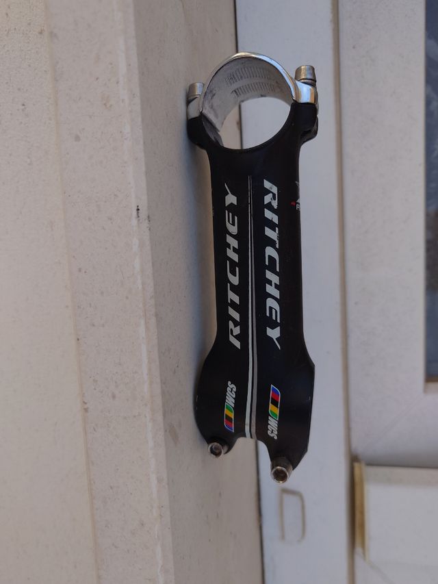 Detalles del productoPotencia de bicicleta Ritchey de 110 mm para manillares de 31,8mm , tiene una cierta inclinación de unos 5 grados invertibles, tornillos de acero inoxidable de cabeza Allen 4mm. Está en buen estado.