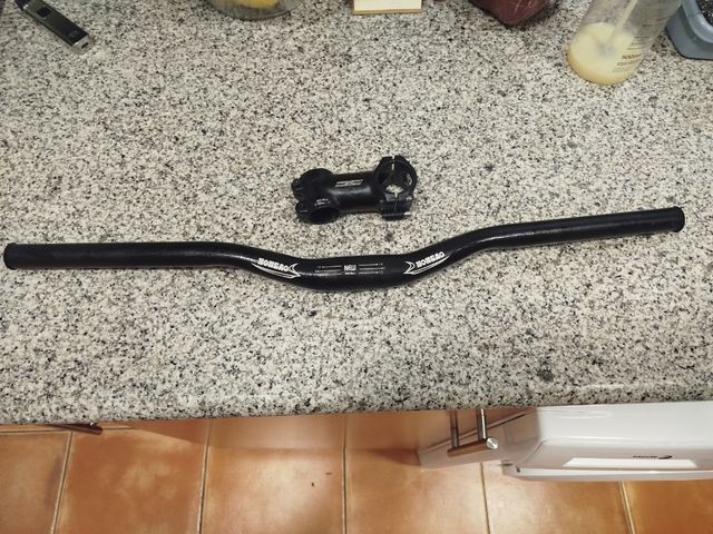 Detalles del productoConjunto de potencia y manillar de aluminio, la potencia es una Megamo de 70 mm y el manillar de doble altura de 60 cms de largo. Se puede vender también por separado.