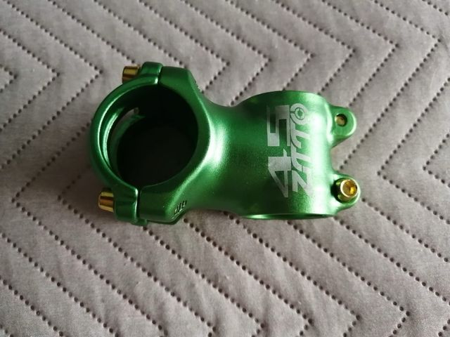 Potencia de bicicleta ZTTO, color verde. Ver medidas en la foto. - Material de aluminio. - Color verde brillante. - Incluye tornillería.