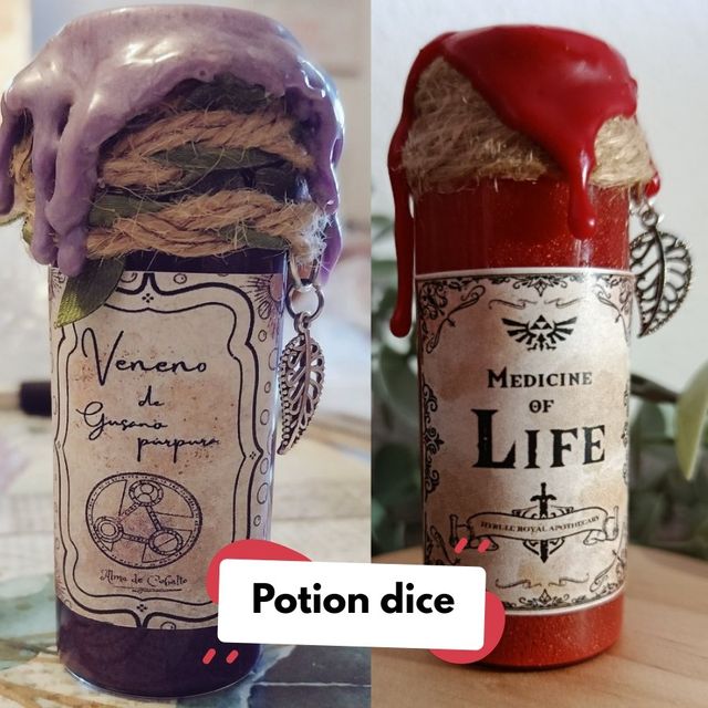 Detalles del productoPoción con dado D20 en su interior, perfecto para jugadores de DND. Hechas a mano❤️