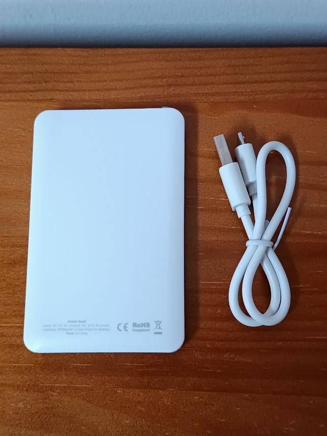 Batería de polímero de litio Capacidad:2500mAh, Impunt:SV/1A, Output:4,5/1A, cable de recarga