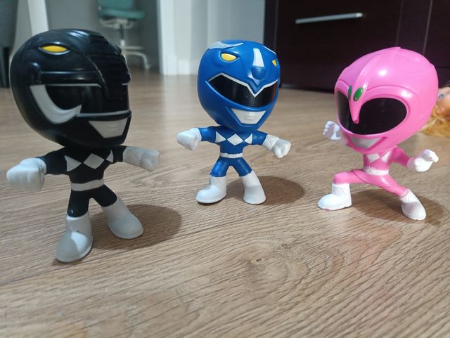 Conjunto de 3 muñecos power Ranger tipo funko pop de unos 6 o 7 cms