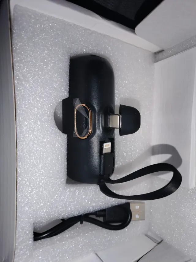 Detalles del productoDispositivo multifunción de carga portátil en color negro.