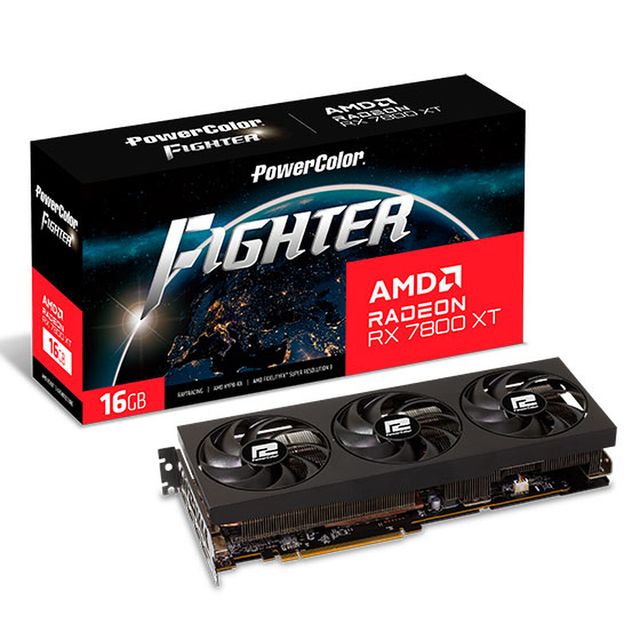 Detalles del productoTarjeta gráfica PowerColor Fighter RX 7800 XT con 16GB de memoria.