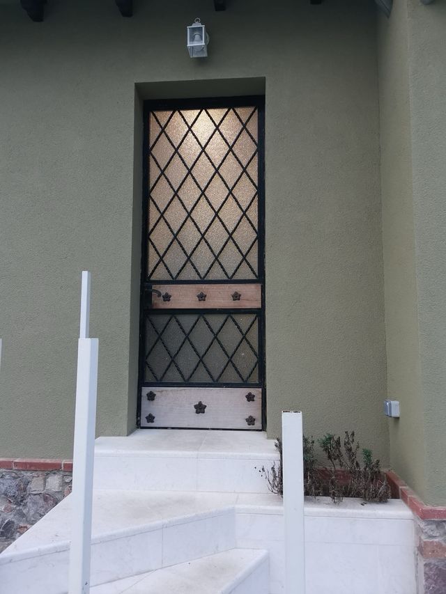 Detalles del productoPreciosa puerta de jardín de hierro con 2 cristales que se pueden abrir y dejar la puerta cerrada con ventilación.