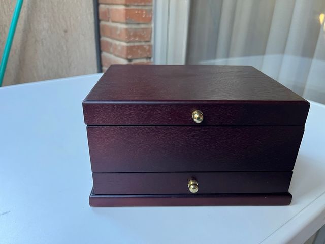 • Interior: Forrado en terciopelo con múltiples compartimentos y cajones