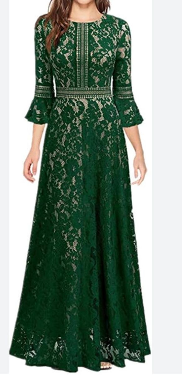 Precioso vestido de encaje verde.