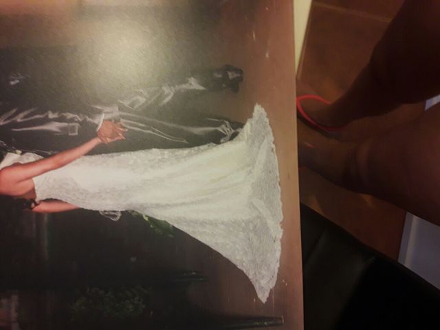 Detalles del productovestido de novia valorado en 3000euros , encaje precioso ceñidito hasta la cintura.