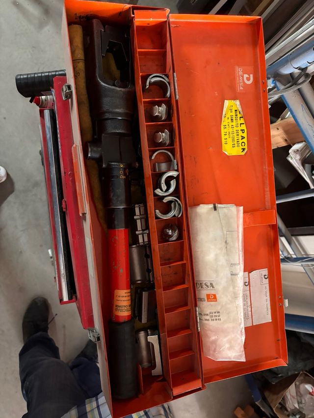 Detalles del productoHerramienta profesional para prensar terminales eléctricos. Incluye maletín de transporte y accesorios.