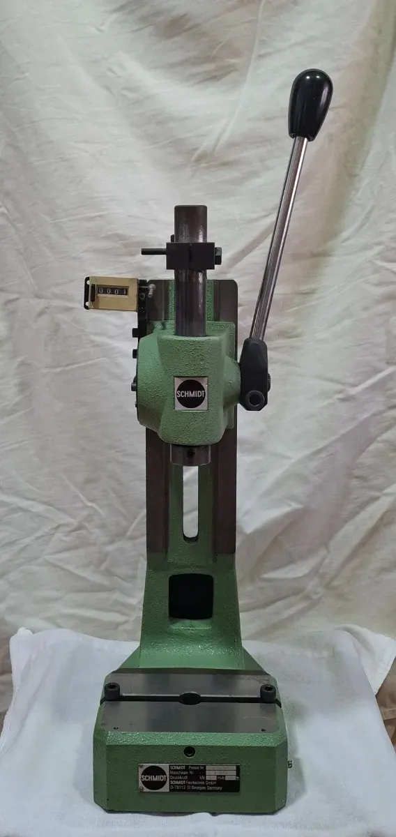 Detalles del productoPrensa manual de cremallera de la marca Schmidt. Ideal para trabajos de precisión.