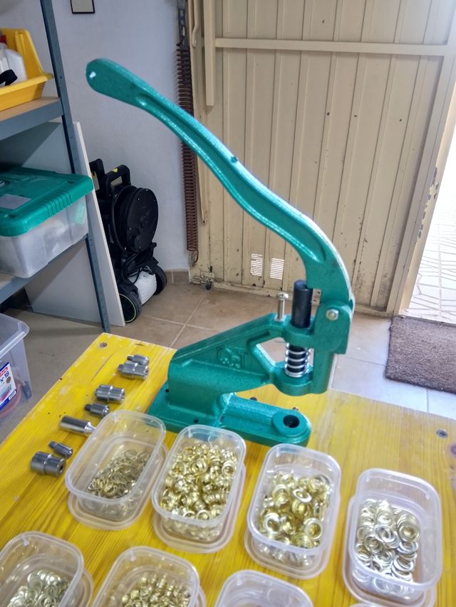 Detalles del productoHerramienta manual para colocar ojales y remaches en tela o cuero. Incluye varios accesorios.