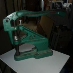 Prensa manual de color verde para colocar remaches. Robusta y de fácil manejo. - Construcción metálica. - Palanca de presión.