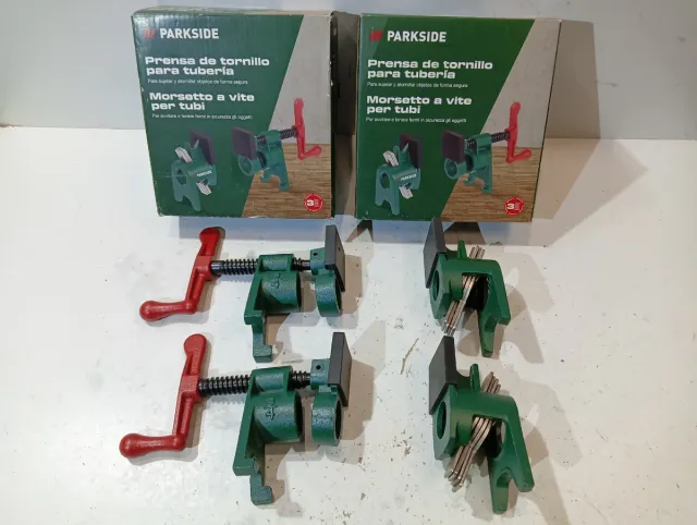 Dos Prensas para sujetar materiales mediante un tubo de 3/4 (26.9mm) de rosca exterior ( no incluye tubo)