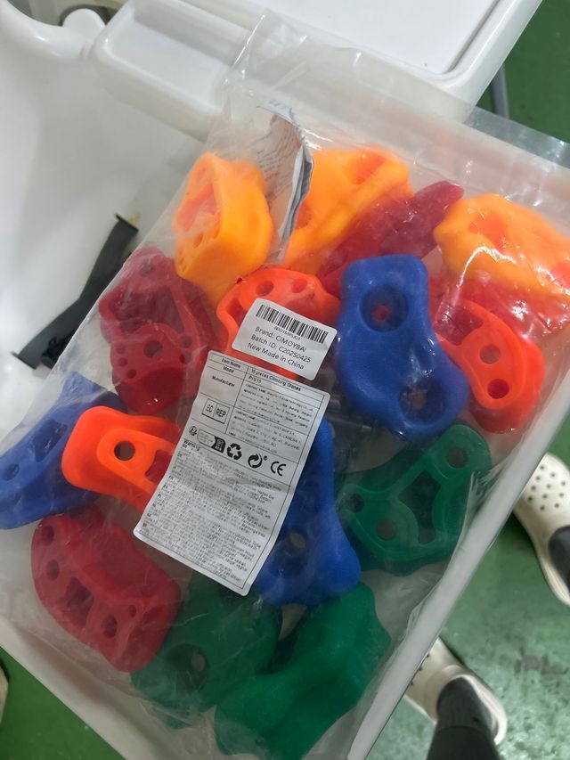 Detalles del productoSet de presas de plástico para rocódromo infantil. Son nuevas y vienen en varios colores.