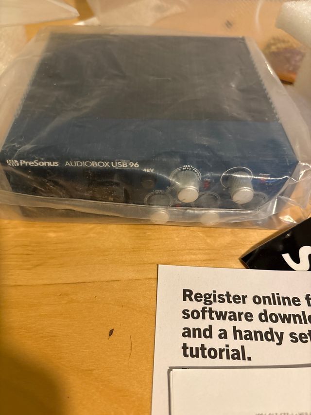 Interfaz de audio PreSonus AudioBox USB 96. - Diseño compacto y portátil. - Conexión USB. no lleva el cable la caja está con signos de desgaste